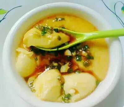 8)调料倒入蒸好的蛋上即可。