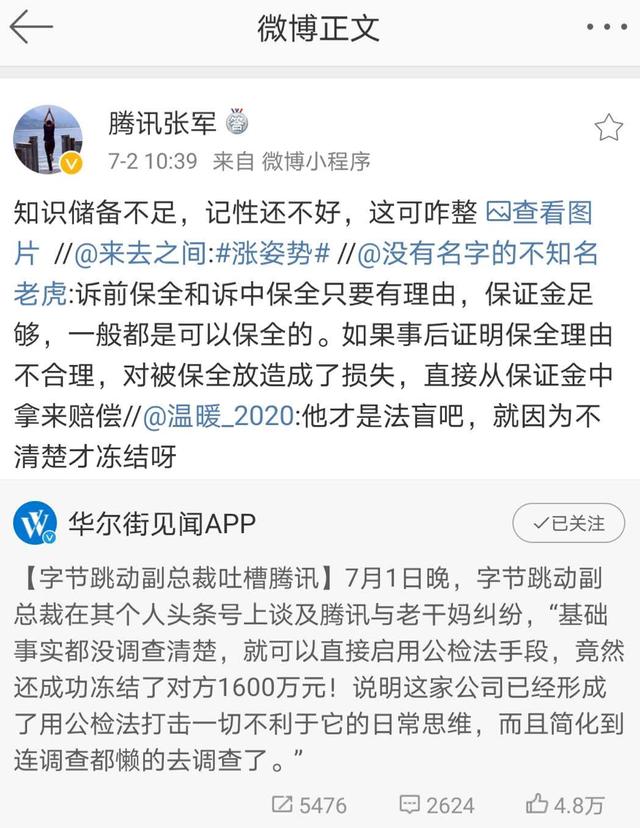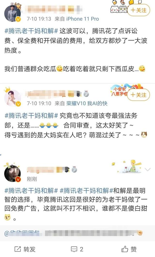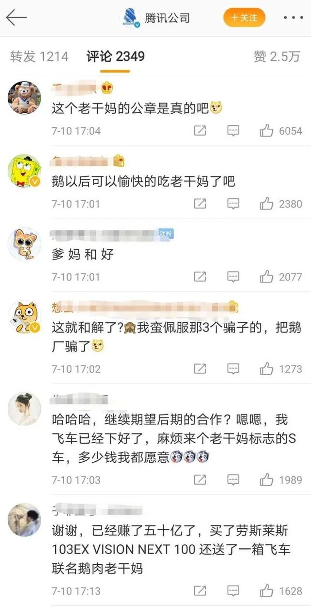第二,过去数日内,腾讯和老干妈双方进行了深入沟通,目前已厘清误解。对于事件过程中的种种误会和欠妥之处,腾讯已向老干妈方面当面致歉,后续腾讯将进一步完善相关流程。未来双方也将积极探索并开启一系列正式合作。 第三,由于此事对社会公共舆论资源造成过多占用,腾讯与老干妈深表歉意。 对此,多位行业观察人士认为,握手言和的收尾,是腾讯和老干妈双赢的结局。值得一提的是,在上述联合声明中,双方还特别提到,未来将积极探索并开启一系列正式合作,二者未来合作将碰撞出哪些火花,也给外界留下了较大的想象空间。   不再是以前的“假合作”,这一次,腾讯方面还提供给中国证券报记者一张腾讯公仔和老干妈的“真合影”:  在腾讯公司的官方微博下,各种神评论也开始出没。  对于双方的这一波操作,有网友直言:“普通群众吃瓜,吃着吃着就只剩下西瓜皮了。”  一场因骗子而起的合作 腾讯和老干妈这一场闹剧是怎么来的呢? 这一切还得从6月30日说起,当时的一份民事裁定书显示,腾讯申请冻结、查封老干妈1600余万的财产,腾讯称起诉是由于老干妈未支付千万元的广告费。 随后,老干妈发声明称从未与腾讯有过任何商业合作,腾讯是被骗了。7月1日,贵阳警方的一份通报证实了老干妈的说法,确实有3名嫌疑人冒充老干妈公司进行诈骗。 在贵阳警方的通报中,3位嫌疑人诈骗的目的竟是为了获取腾讯公司在推广活动中配套赠送的网络游戏礼包码,之后通过互联网倒卖非法获取经济利益。 这一下,腾讯就真的陷入了相当尴尬的局面。无奈之下,只能以自嘲的方式来化解:  各大科技巨头也纷纷加入,调侃腾讯被骗。就在吃瓜群众们以为这件事将以娱乐化、自嘲式的方式结束时,头条系却突然加入了战局。 字节跳动副总裁直指:“基础事实都没调查清楚,就可以直接启用公检法手段,竟然还成功冻结了对方1600万元!说明这家公司已经形成了用公检法打击一切不利于它的日常思维,而且简化到连调查都懒得去调查了。”  对于头条系的吐槽,腾讯公司公关总监张军在微博上立刻回击:“知识储备不足,记性还不好,这可咋整”,并附图显示字节跳动申请冻结另一家公司财产的相关信息。