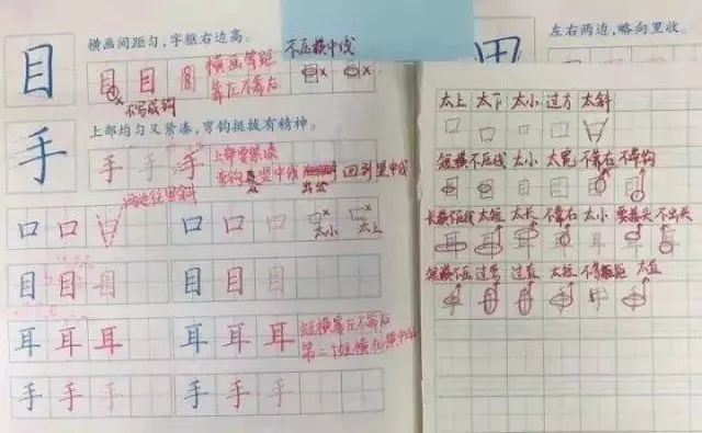 一位老师在家长群里要求,每位家长都要按照图中示例,检查孩子练字。
