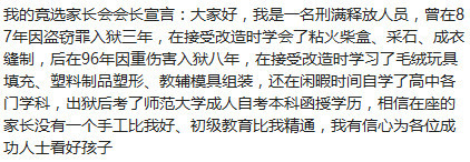 虽然这只是些段子,依然吓坏了一众吃瓜群众。 也难怪网友吐槽说,这些参选家长,看上去都是天顶星飞过来的,他们暗自炫耀的学历、职业、资产、房产,实在远远超出一般地球人的正常认知。