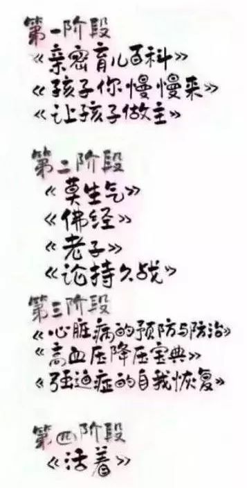 为缓解家长们焦躁不安的情绪,有人贴心奉上“新时代父母必读书单”,一开始还是《让孩子做主》,慢慢就成了《莫生气》、《降压宝典》、《活着》,一般的鸡汤,他们早就灌不动了。