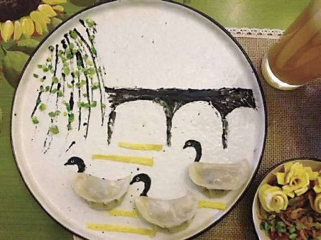 眼见上班上学都要迟到,披头散发的郝漂亮,根本无心打扮。除了哄孩子吃饱,还得收拾地上的烂摊子。 怎么才能让孩子吃得满意?干脆把早饭做得好看些吧。一些职场妈妈甚至干脆辞职回家,专职为孩子准备营养餐。 37岁的重庆妈妈王婧2015年辞去外企工作,成为全职妈妈。每天早上6点,闹钟一响,她就以最快速度,出现在厨房里,并在一个小时内,为女儿准备一份“专属早餐”。每个上学日都是如此。 短短一年里,她已经给女儿做了220份完全不重样的高颜值早餐,灵感全来自平时生活。 随便翻翻她的早餐作品,都像画一样,让人舍不得下口。 比如这盘《门前大桥下,游过一群鸭》。
