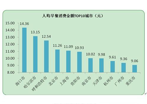 江苏省人均早餐消费10.95元,排名全国第14;海口人吃早餐最土豪,平均近15元;与国内绝大多地方不同的是,馄饨也是江苏人最爱吃的早餐之一——昨天,互联网金融平台挖财根据1亿用户消费大数据,对中国普通居民的早餐消费进行了深度挖掘,发现不少有趣数据。 包子成全国“早餐之星” 江苏人独爱馄饨 数据统计发现,最受国人喜欢的早餐毫无例外的是包子、面条、豆浆、鸡蛋、煎饼等等,油条反而排到了第八,在最喜爱早餐排行前十里,“洋早餐”只有面包、牛奶、蛋糕上榜。而不分南北、被大众喜爱的“包子君”以14.16%的优势拔得头筹,成为名副其实的“早餐之星”。 从江苏人最欢迎的早餐三年排布来看,与全国不同的是,2015年馄饨的消费频次位列最受欢迎早餐第五,这是在全国的特例,江苏人是真爱吃馄饨。 沾“包子君”的光,“豆浆+包子”这一组合成为全国人民最喜爱的早餐搭配,“豆浆+油条”的传统组合紧随其后。另外,网上一度盛传豆浆和鸡蛋不能一起吃,2015年8月7日,央视网聘请营养专家出来辟谣:“在豆浆充分煮透的情况下,鸡蛋加豆浆还有利于营养互补”。纵观全国人民早餐菜谱,“豆浆+鸡蛋”高居前五,而最喜欢这个组合的城市是北京和广州。有网友开玩笑说,北京人民可能是“有文化、讲科学”,广州人民大概是“啥都敢吃”…… 此外,在豆浆咸甜之争上,甜党险胜咸党,以56.71%比43.29%的微弱优势险胜。 年纪越大越愿意在早餐上投资 南京人均花7元吃早餐 对早餐消费按年纪进行统计,记者发现一个非常糟糕的现象,越是年轻的人越不重视早餐,90后和平均早餐消费只有7.4元。而随着年龄增长,大家对早餐的重视度有明显提升,60后的人均早餐消费高达11.15元,看来不少人是尝到了苦头才知道吃早餐的重要性。 在人均早餐消费统计数据上,海口市以人均14.36元独占鳌头,而整个海南省的人均早餐消费也高达13.42元,超过北上广深等一线城市,成为最土豪的“早餐大省”。也许生活在节奏较慢、风景优美的旅游城市的人们,比起行色匆匆的大城市居民们有更多机会享受生活。而南京则以人均10.02元排在全国第七。 根据吃早餐的时间统计,在7点之前吃早餐人数占比最高的五个城市分别是温州市、绍兴市、兰州市、嘉兴市和海口市。而在十点之后吃早餐人数占比最高的五个城市分别是南宁市、三亚市、广州市、重庆市和深圳市。温州人的勤奋果然名副其实。 虽然中国人在早餐的选择上更倾向传统的包子豆浆,但是对于外出就餐的人来说,“洋快餐”成了第一选择,肯德基、麦当劳最受欢迎。现在可以理解为什么肯德基早餐除了汉堡咖啡以外,还要推出豆浆油条,绝对深谙国人的喜好啊。