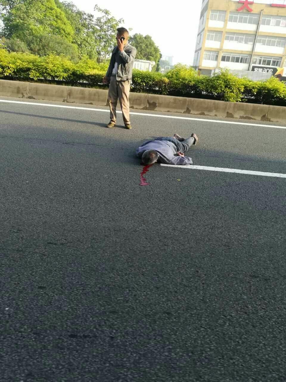 就在刚才路经良常路,一老头被撞飞,倒地一动不动,头部有血,具体情况不详!
