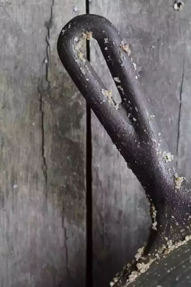 将平底锅的背面和锅柄也进行同样的摩擦。如果锅底顽固污渍比较多,盐会很快变脏,可以再加些盐。