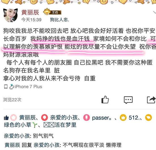 目前,黄丽辰已经删除QQ空间中骂人的相关动态,并因自己对某些爱心人士“出言不逊”致歉。
