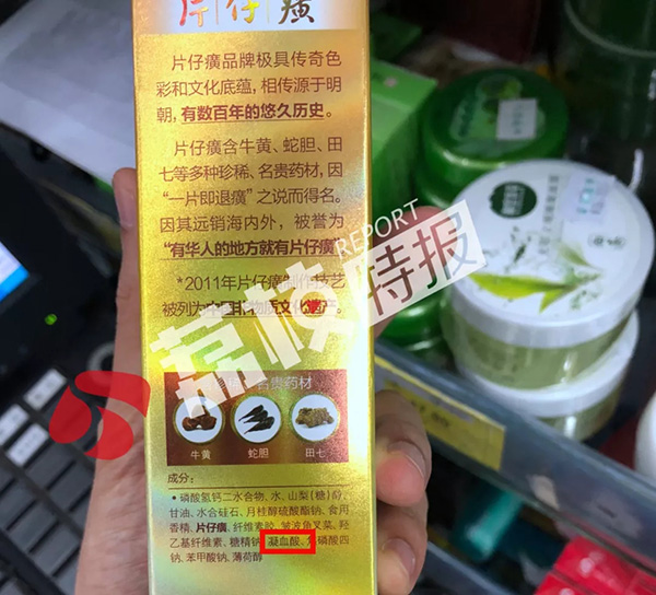 江苏新闻广播记者今天上午走访南京多家超市看到,云南白药牙膏多款产品的成分表中,都标明了“氨甲环酸”。据了解,“氨甲环酸”又名凝血酸,主要有止血、美白等作用。记者还发现,另一款名为“片仔癀”的中药牙膏,其成分也含有“凝血酸”。就该问题,云南白药集团工作人员回应称:“我们没有欺骗消费者的意思,如果欺骗消费者,它上面肯定不会标这个成分,(我们)并没有隐含成分,而且信息都是公开。它里面主要是含有云南白药的药物活性成分,主要是这个来帮助减轻牙龈问题的”。