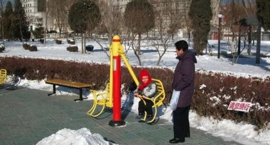 我每次带学生去这个地方,不是看到孩子摔倒在地上,就是听到孩子哭。今年4月份我没有听到孩子哭,没有看到孩子摔倒,然后我看到一位年轻的父亲,在非常非常吃力地推着婴儿车,穿过这个山顶的小平台。 这种体育健身器材,我的电脑里面大概有上千张照片,但是我今天只给大家看一张。在我居住的小区,有一天突然安装了这样的体育健身器材,不过没有几天就拆掉了,因为就是这样的设施,在一天之内,让7个小孩把脚给伤了。  已经要人命的健身器材未引起警惕