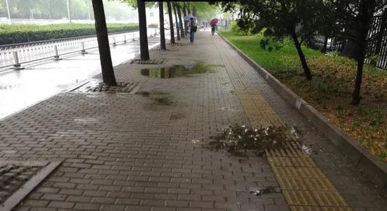 在这个城市,我们的行道树选择了一种浅根系的树种,树根从透水砖和下面硬质铺装的水泥之间伸进去,然后道路就会变得坑坑洼洼。后来我发现,这条路每年都要把砖搬起来,然后把根给去掉,再把道路铺平了,这样的情况反反复复,每年都要去做。 这也是我们的城市的步行道。只要下雨,我们的步行道就会变得无法行走。  这是我们的校园,每到节庆喜庆的时候,我们就会在路灯上挂宣传标语。