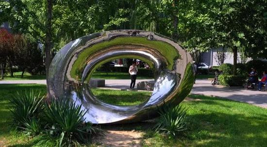 这是城市街心公园中一个漂亮的雕塑,这个雕塑吸引了游客去跟它合影,吸引了儿童去跟它玩耍。但是旁边被种上了一种四季常绿的危险植物,叫剑麻。我居住过的小区里,曾经有一个两岁多的小孩有一只眼睛就是被剑麻给刺瞎了。  小朋友的乐园??