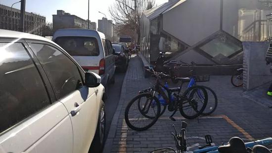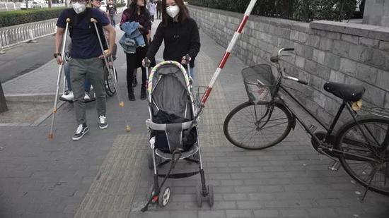 回到北京以后,他去医院治疗,大夫说,你都八十几了,就这样吧。这件事情让老人非常的失望,同时他失去了继续去西南地区参与挚爱的扶贫事业的机会,没过多久,我的这位朋友就走了。 从那个时候开始,我就开始关注我们的城市到底怎么了。 这个新闻估计大家都非常熟悉,是一个城市进行改造之后,人行道只剩下很窄的空间,最窄的地方不到30厘米。后来我的学生帮我拍了这张照片。  不想让人走的路