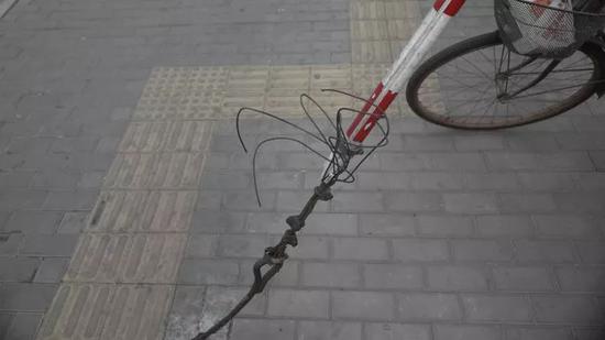 这种铁杆非常锋利,我去拍这张照片之前,想试一下这个铁杆到底有没有危险。手一撞上去,立刻就出血了。