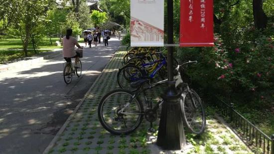 而且随处可见在靠近地铁站的地方停满了自行车,还有人把自行车锁到了旁边绿地的护栏上面。 有一天走在我前面的一位女同志,她斜挎着的一个背包带被自行车的车把挂住了,然后身子一歪就坐到了地上。等我走近一看,她居然是一个孕妇。这个孕妇手扶着自行车站了起来,这个时候自行车有用了。我说,您需要我帮您叫救护车吗?她说,不用,我已经习惯了。