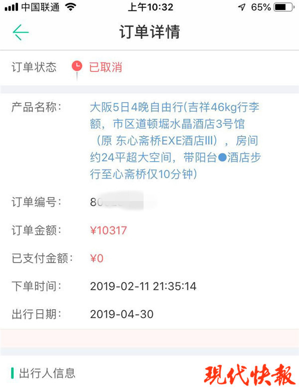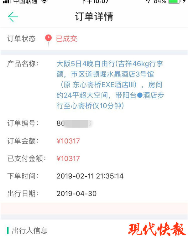 现代快报讯(记者 宋体佳 )2月12日,常州市民韩先生向现代快报反映,他用“春秋旅游”手机app抢到的优惠券购买旅游产品,支付成功后遭强制取消。另有一份已经得到确认的订单也被告知无效,理由是优惠券发放系统出现漏洞,订单无法正常出行。随后,现代快报记者进行了调查。 韩先生妻子成功支付订购大阪旅游行程的交易记录 在完成支付后,大阪行程被单方面取消“计划今年到大阪去看看,看到优惠幅度比较大嘛,就买了。”韩先生称,2月11日晚上,他从朋友处得知,“春秋旅游”app上在搞活动,购买旅游产品有很大优惠,他随即让妻子登录账号抢购。“进去以后领到优惠券,购买了到日本大阪的旅游产品,我们发现优惠幅度很大,就用我的号码和另外一位家人的号码也注册了账号抢了优惠券。” 图为韩先生提交完毕后生成的电子合同韩先生提供的手机截图显示,他从app上抢到的优惠券分8299元、70元和160元三种,每一种都有附加的使用条件,其中8299元的优惠券名称为“到喜啦320元专享红包”,附加条件为“满320元可用”。韩先生说,也正是这张优惠券吸引他用新注册的账号再次购买了两款旅游产品。 已支付订单凭证据了解,当晚,韩先生共购买了日本大阪、海南三亚及土耳其路线的三款旅游产品,直到2月12日凌晨,才全部完成支付。“三亚的那个原价2700元一个人,我们一家三口,优惠后交了96块钱。”韩先生称,12月12日上午,他先是收到了海南三亚旅游的电子确认书,“确认以后就收到了一份电子合同,但其他两份产品都被单方面取消了。” 现代快报记者调查发现,韩先生的遭遇并非个案,常州胡女士等多人抢到的优惠旅游产品也都被取消了。订单被取消后,韩先生随后联系上海春秋旅行社有限公司理论,“他们说系统出现问题,优惠券弄错了,只能取消。” 韩先生向现代快报记者提供了一段妻子与“春秋旅游”客服的通话录音。客服人员称,“因为系统问题给您发了一个优惠券,但券的金额是有误的,这张订单是不能正常出行的。”通话中,客服人员承认是公司方面造成的错误,但由于涉及的人员较多,数额较大,已经生成的订单可能没办法兑现。至于对当事人造成的影响,该客服人员称,公司将给予320元优惠券及部分SPA券作为取消旅行的补偿。 对于这样的解决办法,韩先生及其他消费者均无法理解。2月12日下午,现代快报记者拨打“春秋旅游”客服热线,在表明记者身份后,客服人员称将会反映给相应工作人员进行回应。但截止发稿时,现代快报记者未收到任何回应。 “低价和系统漏洞不是解除合同的合法理由。”江苏致达律师事务所贺冬律师认为,商家在网上挂出了优惠信息属于邀约行为,消费者通过合法手段达成交易,说明服务的法律关系已经成立,在这种情况下,旅游公司就没有任何理由单方面解除合同,“低价和BUG都不是理由,从法律角度讲,已经走完必要流程的订单,即便有损失,商家也必须履行。” (图片均为手机截图 编辑 蒋文嘉) 来源:现代快报