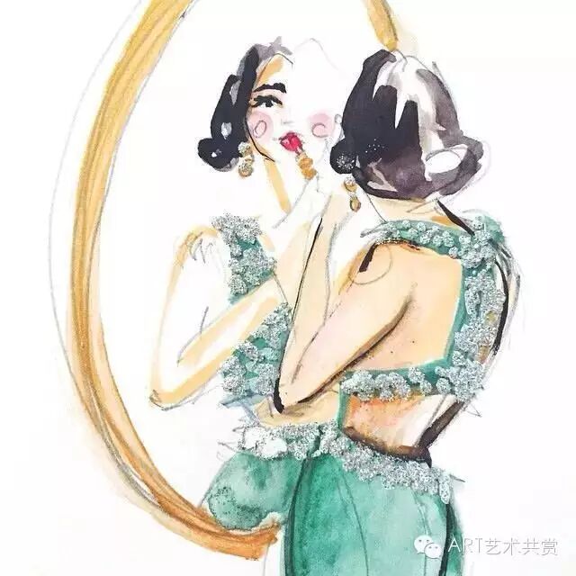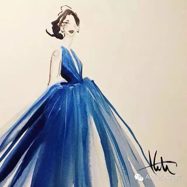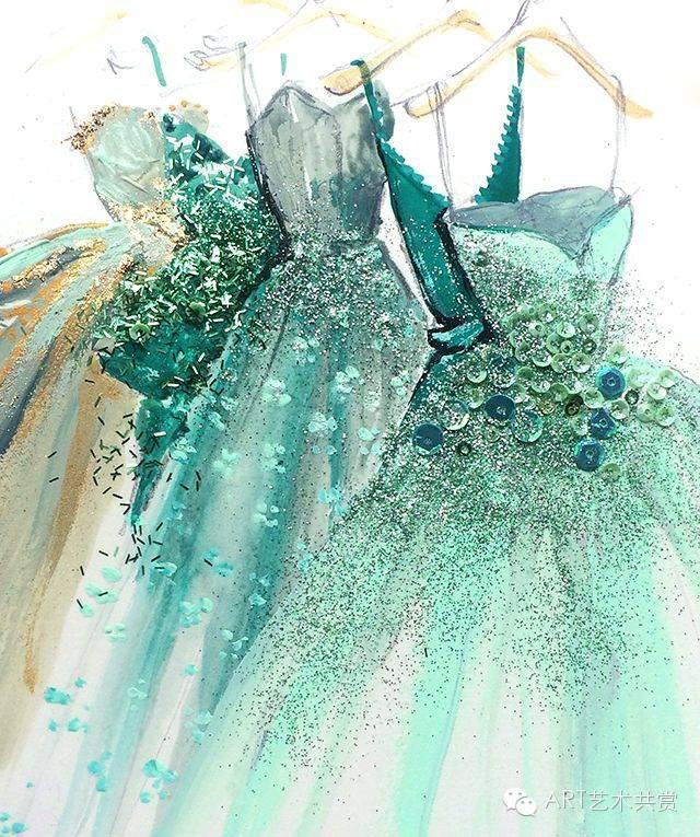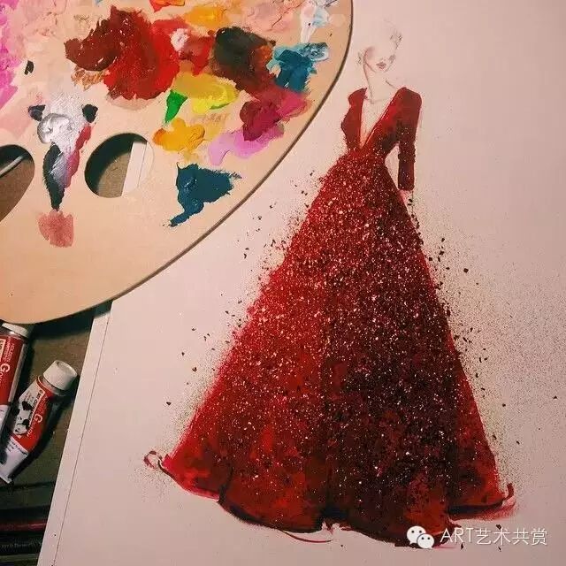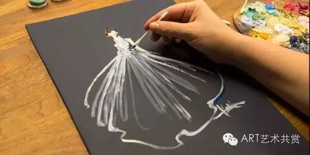 除了画笔之外,她更喜欢使用不同的媒介或方法作画。至于为什么会选择画这些华丽的礼服,她表示:“每一件礼服的背后不但有一个充满才华的设计师、还包含设计师的理念和故事,这是多么鼓励我去画它。”