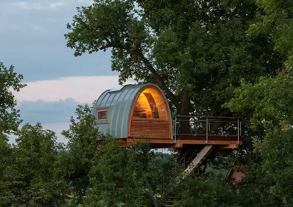 你想跟自由在空中飞翔的小鸟共眠一室吗,这间树屋能帮到你。虽然屋内装有一面隔离墙,但你仍然可以通过墙中的小孔观察到它们的一举一动。