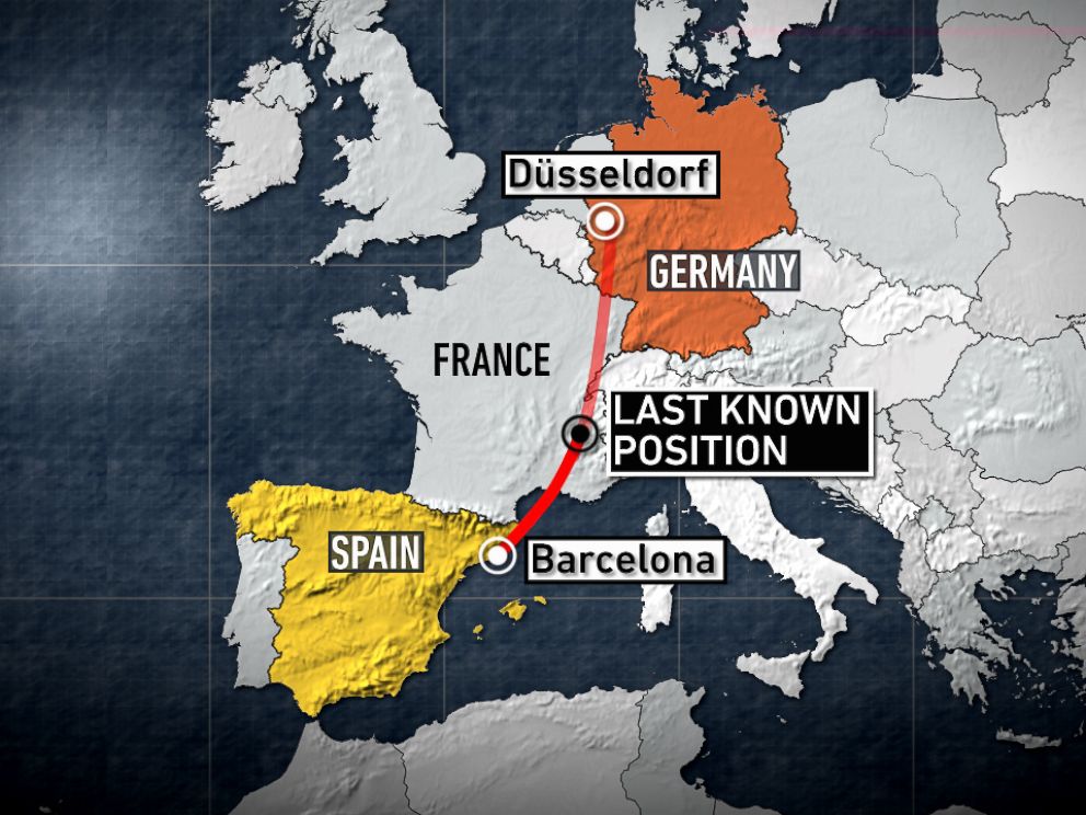▲4U9525 的飞行线路图
