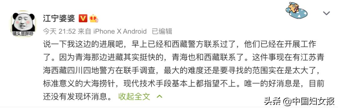 而作为持续关注此事,且与江宁公安有密切联系的大V@江宁婆婆 透露,目前有江苏青海西藏四川四地警方在联手调查。