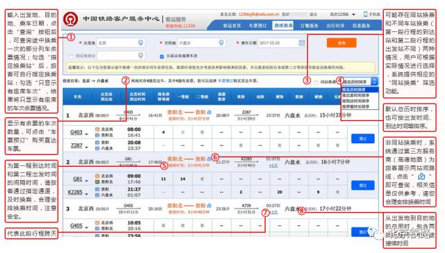 (1)系统展示途中换乘一次的部分列车余票信息,购票时请您充分考虑各种影响换乘的因素,并自愿承担因自身或第三方等原因导致延误换乘的风险,请您根据实际情况,选择是否购票,购票后合理安排时间,及时换乘。