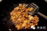 热锅热油,放入五花肉翻炒至微焦,加生抽翻炒,然后留油把五花肉捞出备用。