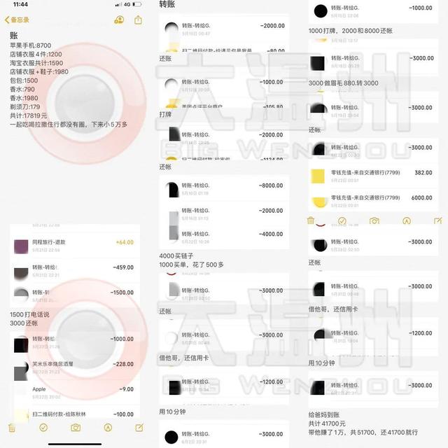 以下是在一起期间所有的转账记录,太多我就拼图了