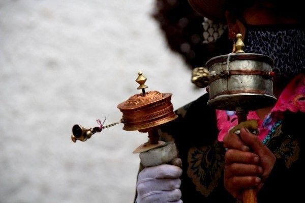 藏族人用转经轮来代替念经,除了寺庙里的大经轮,最常见的就是手摇小经轮,游客最爱买的礼物之一。