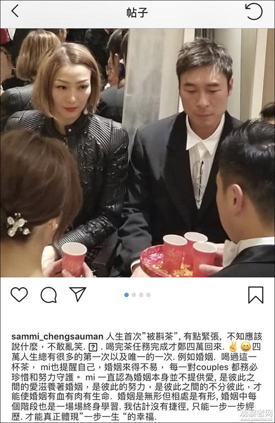 郑秀文才于今年三月发表过对婚姻的看法,表示“一直认为婚姻本身并不提供爱,是彼此之间的爱滋养着婚姻,是彼此的努力,是彼此之间的不分彼此,才能使婚姻有血有肉有生命。婚姻是无形但相处是有形,婚姻中每个阶段也是一场埸终身学习。我估计没有捷径,只能一步一步经历。才能真正体现‘一步一生’的幸福。”