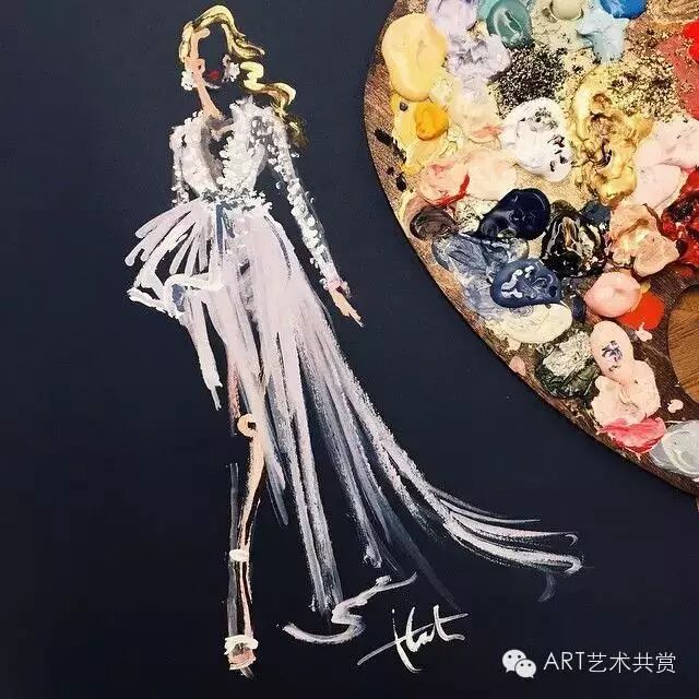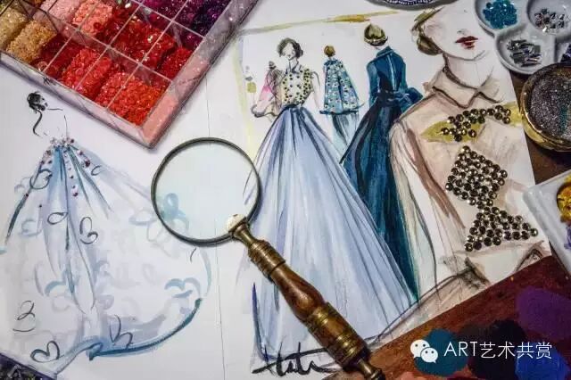 除了画笔之外,她更喜欢使用不同的媒介或方法作画。至于为什么会选择画这些华丽的礼服,她表示:“每一件礼服的背后不但有一个充满才华的设计师、还包含设计师的理念和故事,这是多么鼓励我去画它。”